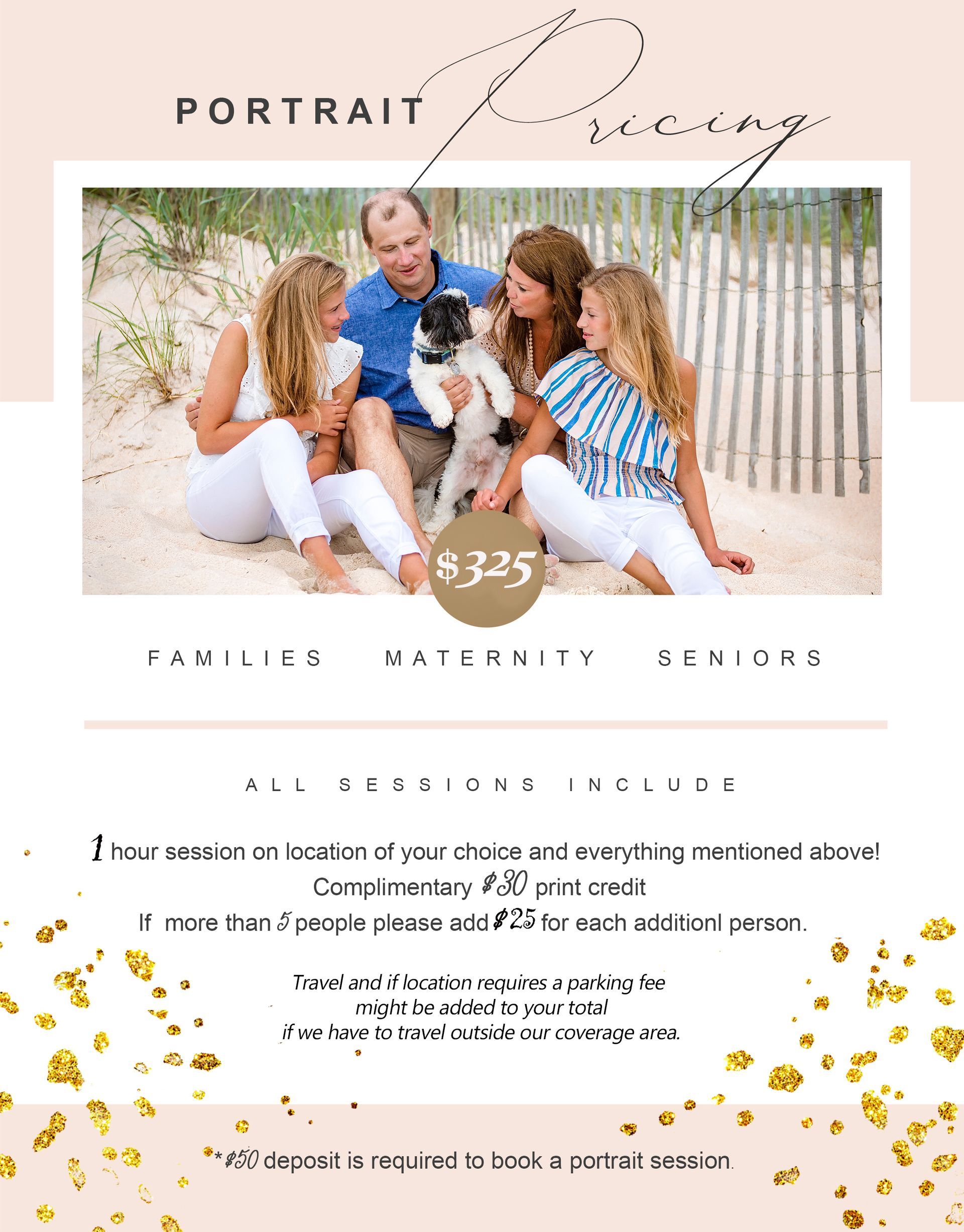 Please read through this guide to view pricing information and learn about the various types of sessions we offer. Be sure to contact us with any questions or concerns you may have and give us a call to check availability and book your session.